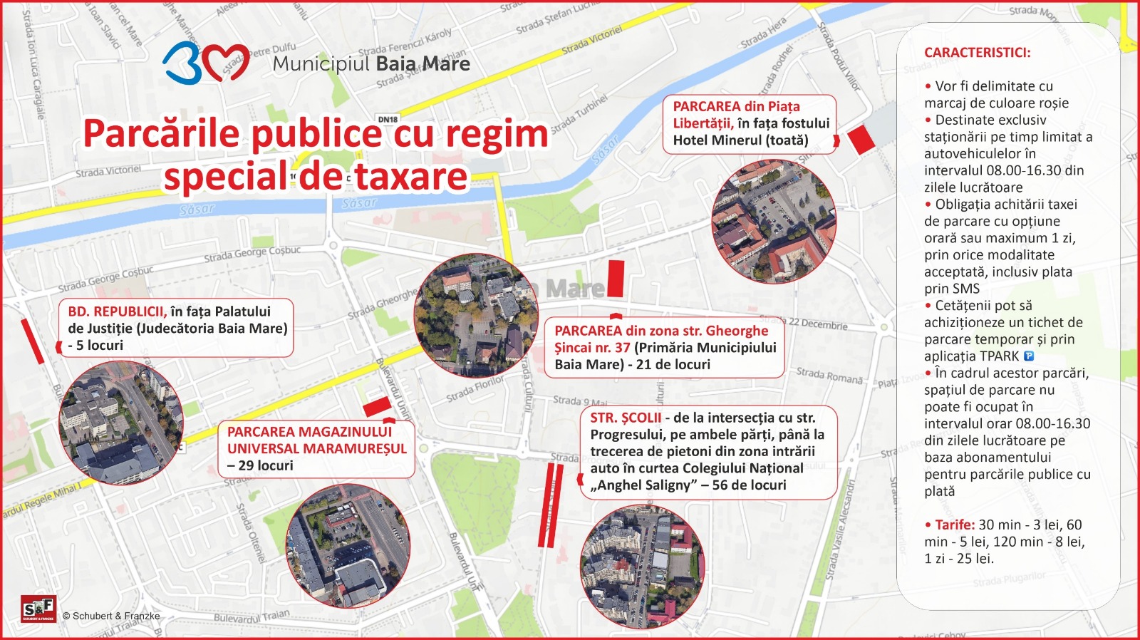 • parcarea din zona str. Gheorghe Șincai nr. 37 (Primăria Municipiului Baia Mare) – 21 de locuri;