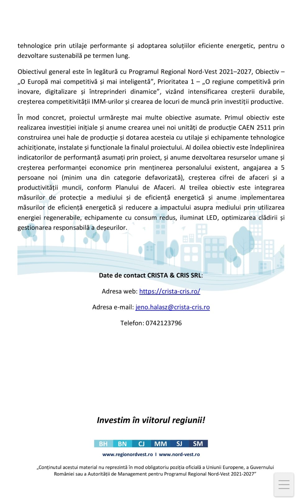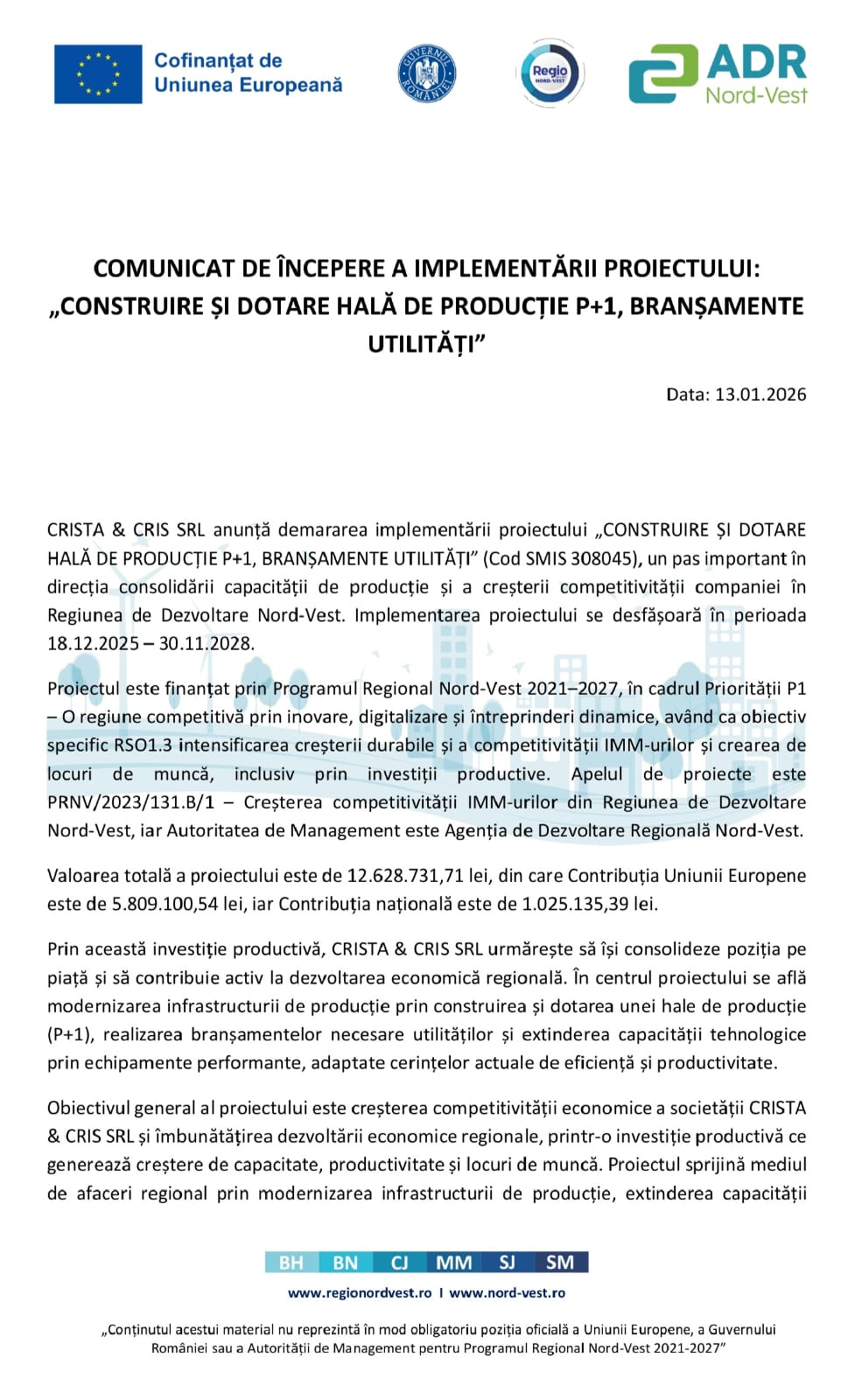 AcasăActualitateCOMUNICAT DE ÎNCEPERE A IMPLEMENTĂRII PROIECTULUI: „CONSTRUIRE ȘI DOTARE HALĂ DE...ActualitateAdvertorialeEconomicNews AlertCOMUNICAT DE ÎNCEPERE A IMPLEMENTĂRII PROIECTULUI: „CONSTRUIRE ȘI DOTARE HALĂ DE PRODUCȚIE P+1, BRANȘAMENTE UTILITĂȚI”055De către ActualMM13/01/2026DISTRIBUIȚI loading... DISTRIBUIȚITagscomunicat de presamaramuresARTICOLE SIMILARE ActualitateACȚIUNE APARTE DE ZIUA CULTURII NAȚIONALE ÎN BAIA MARE | Elevii de la Școala Gimnazială Nichita Stănescu au transformat un colț din curtea școlii... 15/01/2026 AdministrațieCOMUNICAT DE PRESĂ | Deszăpezirea în Municipiul Baia Mare este estimată, iarna aceasta, la 2,5 milioane de lei 15/01/2026 112AVIZ MARAMUREȘENILOR CARE CONFUNDĂ DRUMURILE PUBLICE CU DERDELUȘUL | Pe cei care trageți sănii după mașină, pe lângă pericol, vă paște și o... 15/01/2026 112GRATUIT PENTRU TINERII ÎNTRE 15 -23 DE ANI | Aeroclubul României – Baia Mare a deschis înscrierile pentru anul 2026 15/01/2026 LĂSAȚI UN MESAJ Renunțați la răspunsComentariu:Vă rugăm să introduceți comentariul dvs.! Nume:*Introduceți aici numele dvs. Email:*Ați introdus o adresă de e-mail incorectă!Vă rugăm să introduceți adresa dvs. de e-mail aici Website: Salvați numele meu, adresa de e-mail și site-ul web în acest browser pentru data viitoare i comentariu. TE-AR MAI PUTEA INTERESA ActualitateACȚIUNE APARTE DE ZIUA CULTURII NAȚIONALE ÎN BAIA MARE | Elevii de la Școala Gimnazială Nichita Stănescu au transformat un colț din curtea școlii... 15/01/2026 AdministrațieCOMUNICAT DE PRESĂ | Deszăpezirea în Municipiul Baia Mare este estimată, iarna aceasta, la 2,5 milioane de lei 15/01/2026 112AVIZ MARAMUREȘENILOR CARE CONFUNDĂ DRUMURILE PUBLICE CU DERDELUȘUL | Pe cei care trageți sănii după mașină, pe lângă pericol, vă paște și o... 15/01/2026 112GRATUIT PENTRU TINERII ÎNTRE 15 -23 DE ANI | Aeroclubul României – Baia Mare a deschis înscrierile pentru anul 2026 15/01/2026 112CÂND EȘTI „CURAJOS” DE MIC… AJUNGI ȘI RĂNIT ȘI CU DOSAR PENAL! | Un bărbat din Rona de Sus a suferit leziuni după ce... 15/01/2026