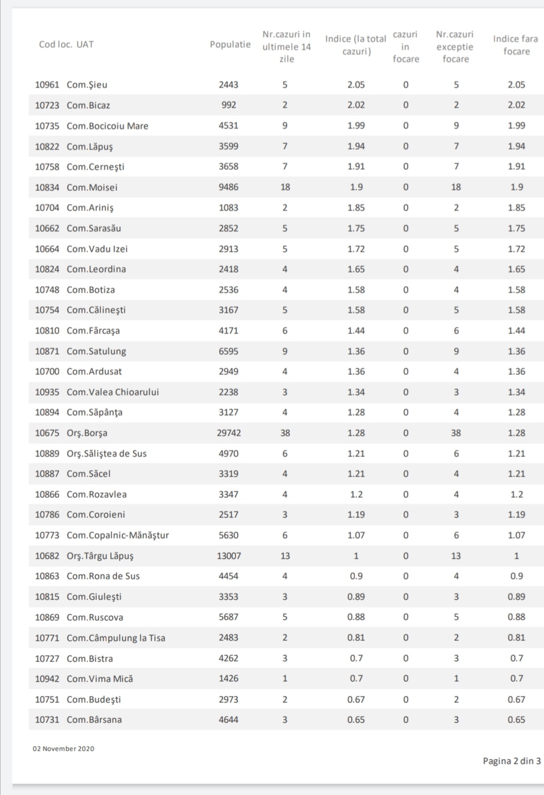 Conform raportului întocmit de către DSP Maramureș și semnat cu data de 2 noiembrie, nu mai puțin de 15 comune, 1 municipiu și 2 orașe au trecut pragul de 3 cazuri la 1.000 de locuitori. Situația stă prost și în Baia Mare: de la o incidență de 3, într-o săptămână aceasta a urcat la 4,69 (practic, o rată la care localitatea Petrova era deja carantinată). Cât timp va mai dura pănă când Baia Mare și celelalte localități unde incidența cazurilor noi a urcat îngrijorător vor intra pe lista zonelor carantinate?
