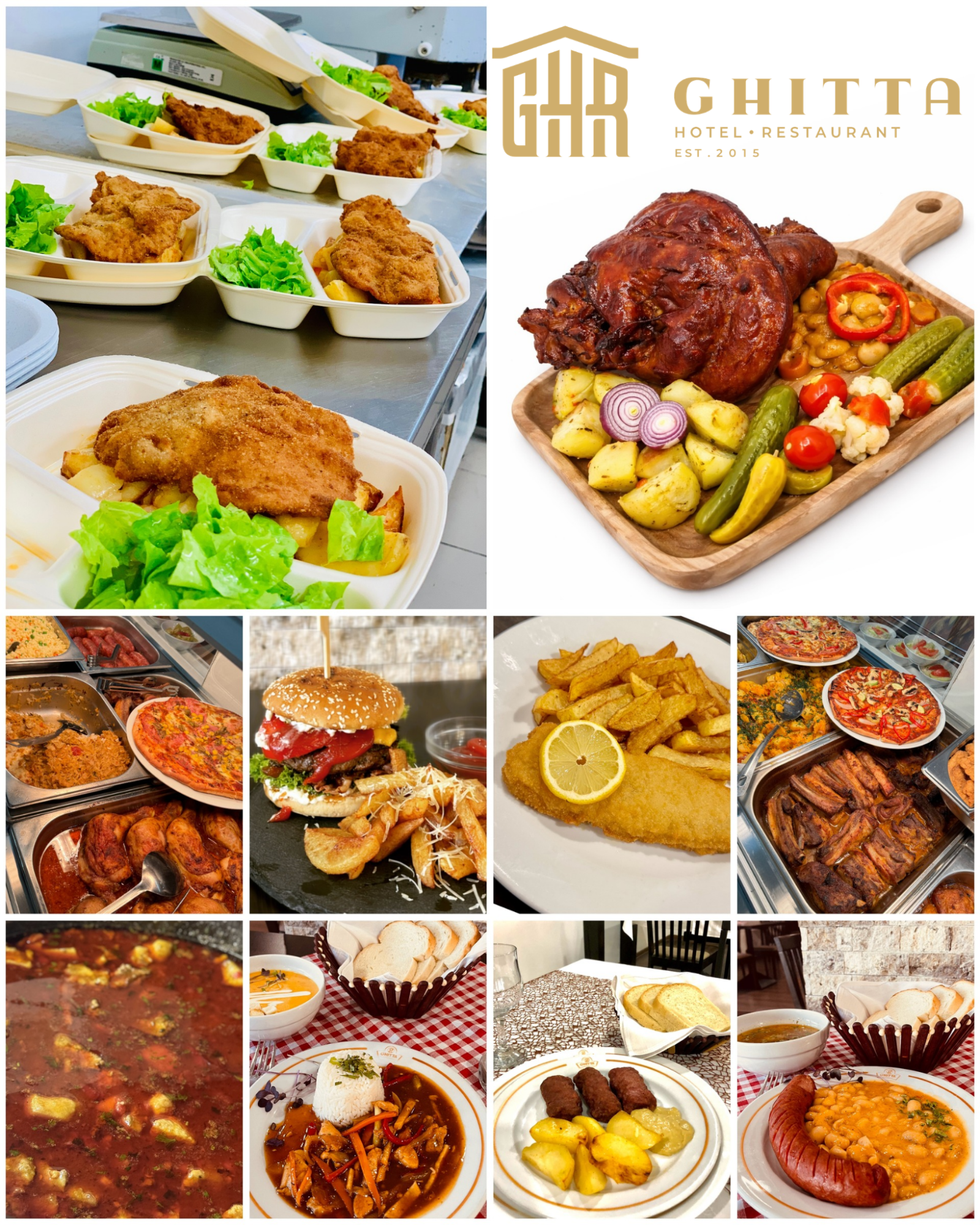 GHR Evenimente – Ghitta Hotel Restaurant este cunoscut în primul rând ca loc de evenimente – nunți, botezuri, majorate organizate cu eleganță de ani de zile. Dar cei care au descoperit și restaurantul, și meniul zilei, știu că e altceva: e locul în care mergi când vrei să mănânci bine fără să cauți un motiv special. Disponibil și cu livrare!