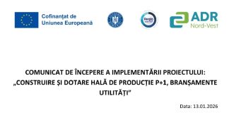 COMUNICAT DE ÎNCEPERE A IMPLEMENTĂRII PROIECTULUI: „CONSTRUIRE ȘI DOTARE HALĂ...