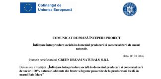 COMUNICAT DE PRESĂ ÎNCEPERE PROIECT Înființare întreprindere socială in domeniul producerii...