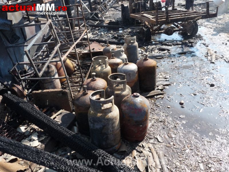 Flăcările s-au  extins după ce cinci butelii de aragaz au explodat. În incintă se mai aflau 11 butelii care au fost răcite şi îndepărtate din zona periculoasă de către pompieri.